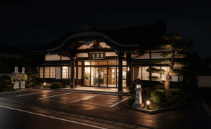 廊下の途中の仕切が開いていて、その向こうの暗闇にあの納戸がうっすらと見えていました。