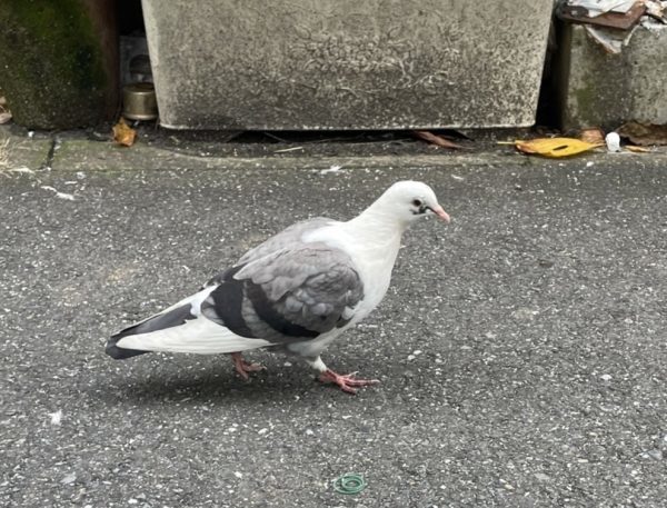 この写真の鳩はわたしの見つけたベストオブ鳩です。カモメ柄です。